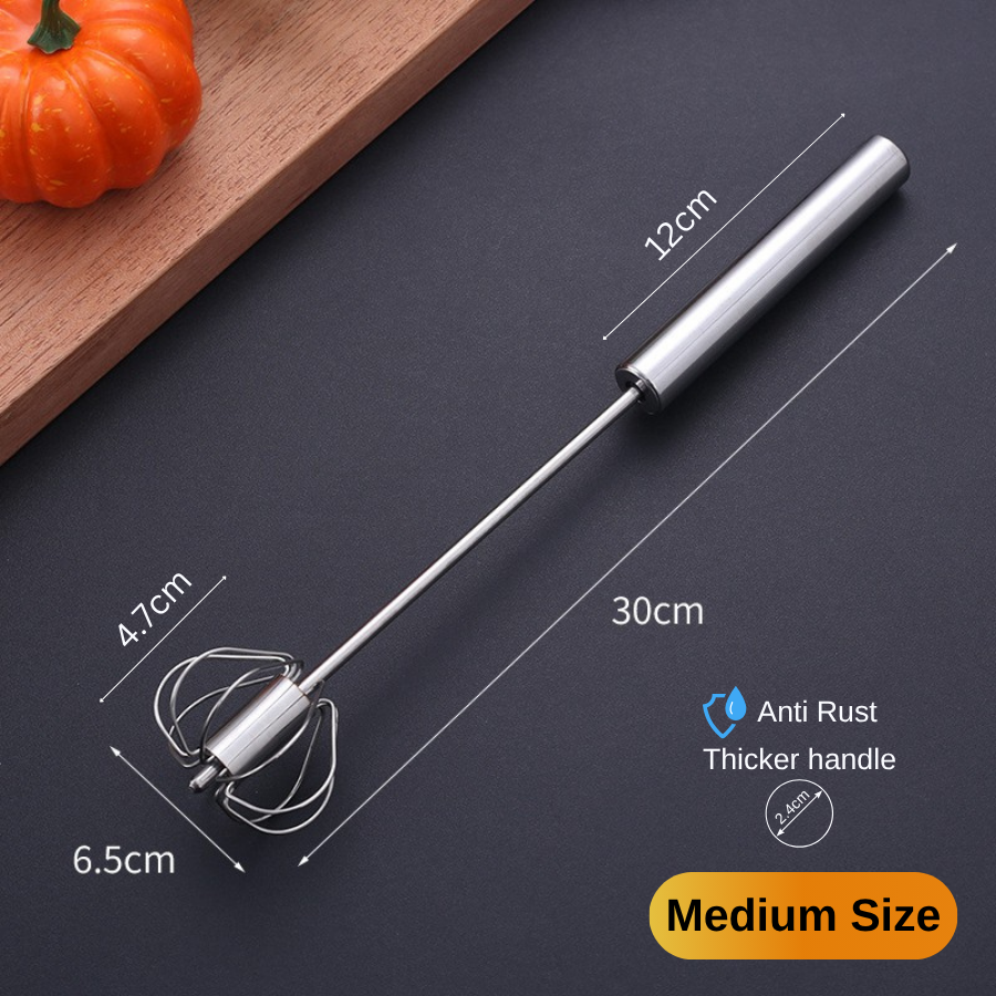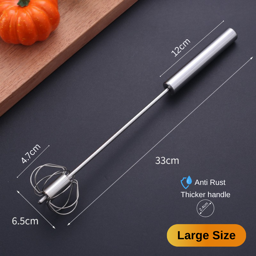 - Effortless spin whisk, to rotate whisk head, just push downward and release upward, both actions rotate the whisk clockwise then counterclockwise. Pressure rotary semi-automatic newness whisk, Perfect tool for home kitchen.